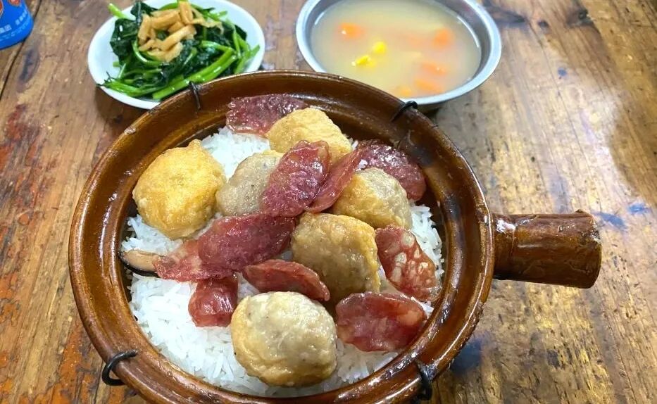,最经典的当属腊肠和排骨,咸香的鲜肉搭配着白米,吃一口满嘴留香。