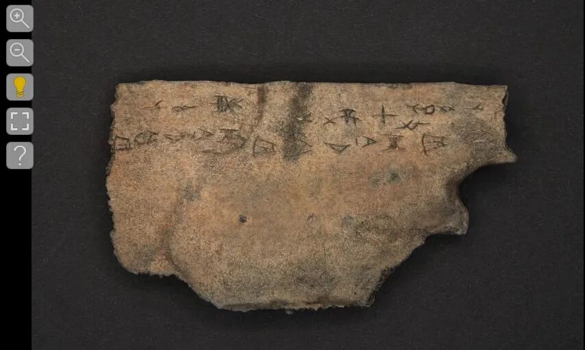 2、甲骨阅读界面,点击左侧工具栏灯泡在甲骨表面移动,变换不同角度光源能够展示更多细节。