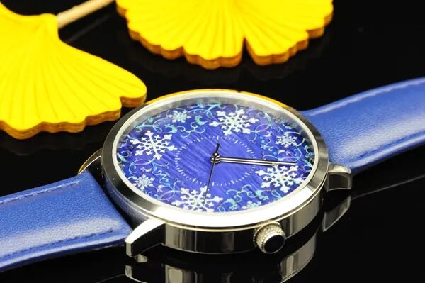 2022年初,北京金漆镶嵌有限责任公司与北京燕京八绝博物馆、当代造办处、和合雕漆局联合推出了冰雪文创——金漆镶嵌螺钿创新工艺手表,备受消费者追捧和欢迎。这款手表在外观设计上以圣洁的雪花作为表盘基础纹样,并配以如意云头,结合在唐代被誉为“吉祥三宝”之一的宝相花,其间施以绵延不断的缠枝莲作为点缀,同时借鉴荷兰版画家埃舍尔的艺术理念,使表盘具有较强的韵律美和运动感。这款限量版的“国风”非遗工艺手表,一度被卖到断货,也给了侯雪全新的启示:“好的非遗产品不是扔进博物馆的展品,它一定是迎合了现代人审美需求、融入现代人生活的。”