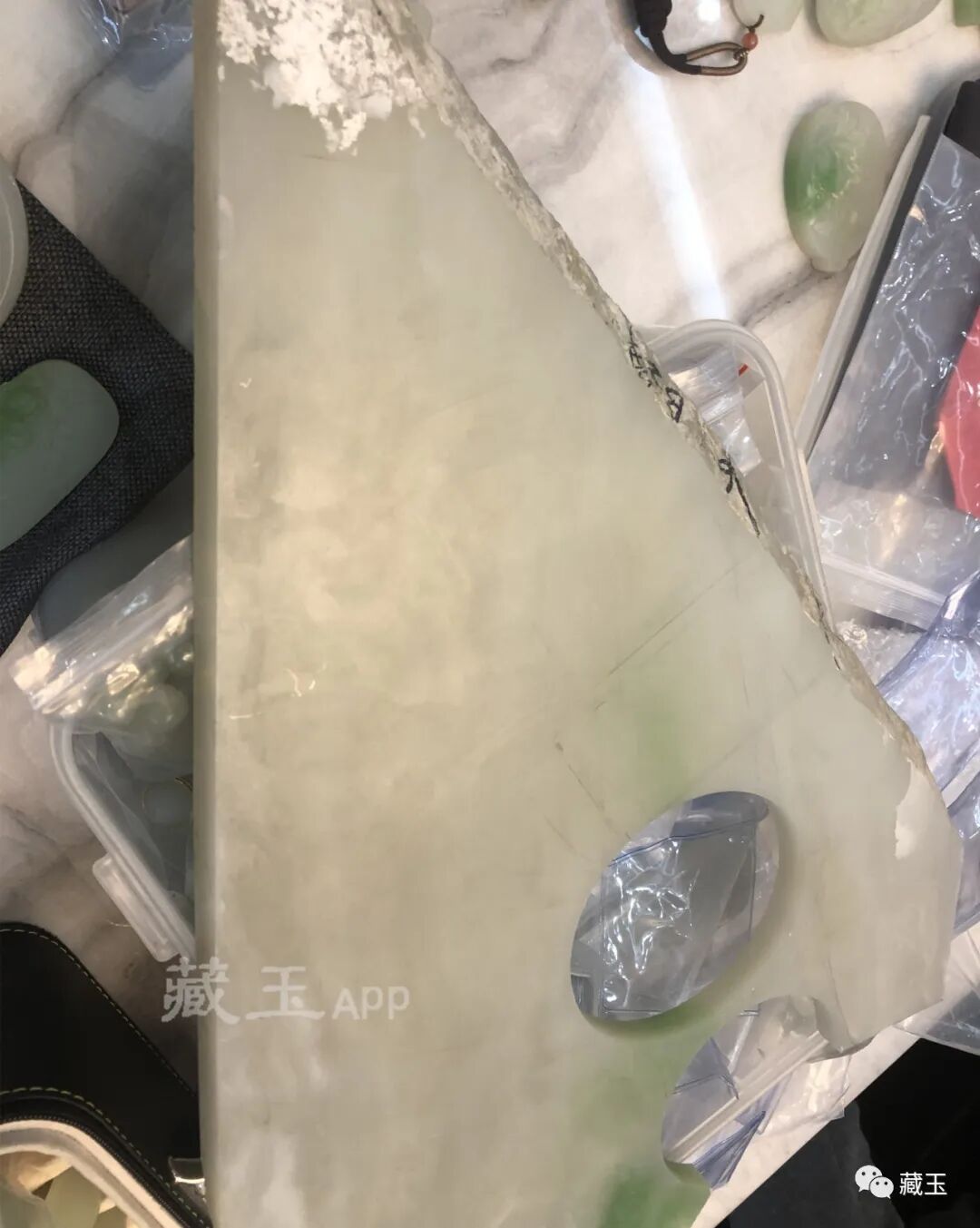 第一种就是翠色浓的,对于翠青料来说,大家最喜欢的就是它独特的翠色,所以对于翠青料来说,翠色浓而且很聚的,往往都是超贵的。 而且我们也要知道,市场上的翠青其实绝大部分看起来都是翠色比较淡,或者翠色比较散。 所以如果一个翠青料的翠色特别满,那么它在翠青里绝对是品质很高的了。 第二种就是白肉白的。绝大部分翠青料的白肉其实都不白,能达到这种品质的白就已经很不错了: 这是翠青的一大问题。但我们也要知道,很多时候翠青料的白肉白也不一定都是好,这个下面我们再细说。 翠青是一个问题极多的料子,这个可能作为玩家的我们不太了解。 翠青这种料问题极多,它包含了裂、结构、僵等等各种各样的瑕疵。 所以处理翠青料是一个很难的问题,甚至我们可以说大部分玉雕师都难驾驭这种翠青料。 所以一个玉质干净、翠色也干净的翠青料,在如今看来,它就是一块好料!