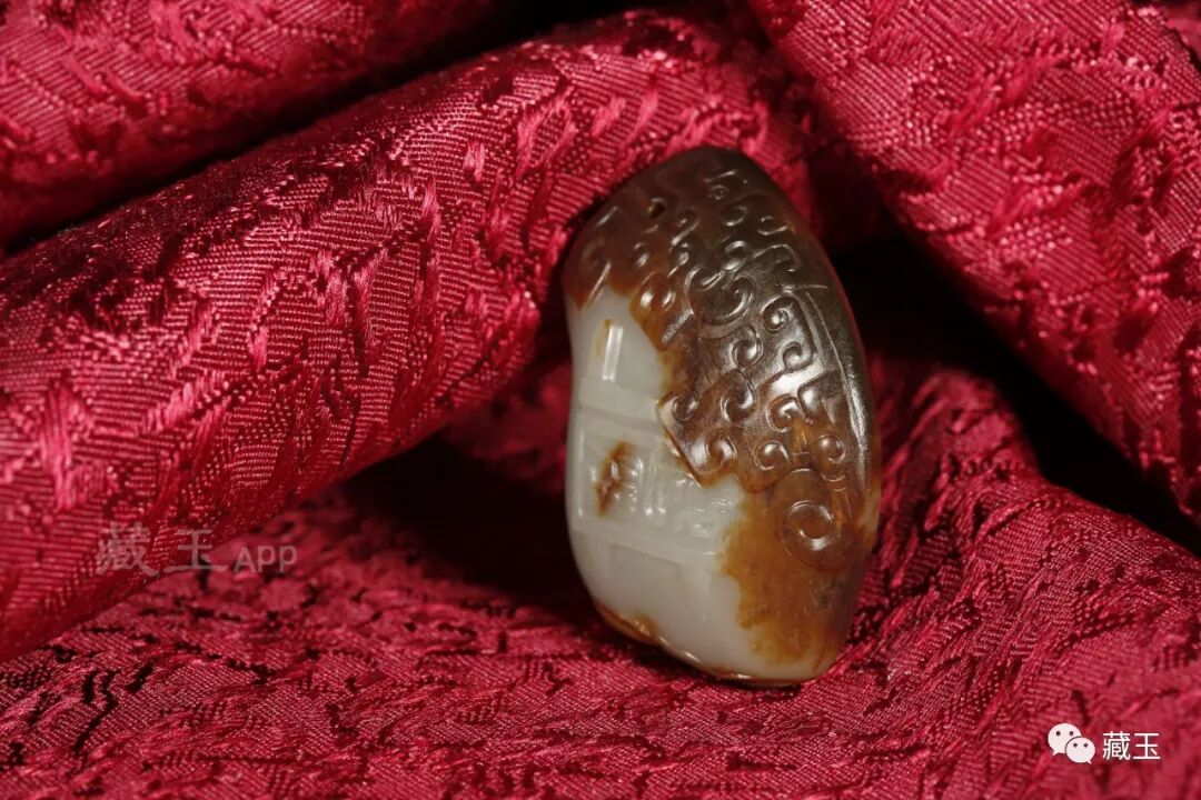 这种偏白的料子在沙枣青比较少见,如果其上没有沙枣青独特的丝绢状结构,或许很多玩家还会错认,辨别不出。