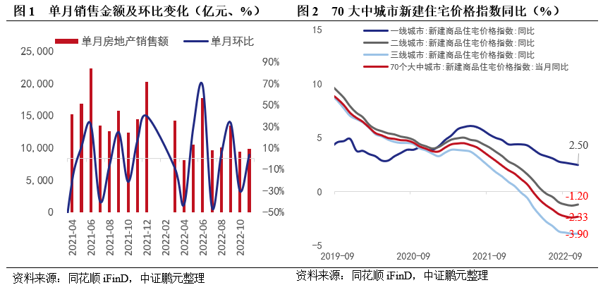11月地产供需两端持续走弱,商品房销售单月同比降幅扩大,一线城市住宅价格承压,待售面积高位增长。拿地、新开工持续低迷,单月开发投资额降至2018年4月以来最低。11月以来房地产行业“三箭齐发”,政策层面融资支持力度加大,但11月房企资金面数据整体未呈现改善,短期内政策惠及的主要对象仍是央国企及部分优质民企,后续政策对房企整体资金面的传导有待持续观察。