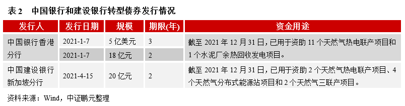 银行和企业的发行案例:在政策发布之前,上交所已经发行了4只低碳转型债券,由3家发行人发行,除了低碳转型挂钩债券外,募集资金均100%用于低碳转型领域,均进行了低碳转型属性论证,有2家发行人对公司的转型规划、目标进行了披露。此外,2021年中国银行和建设银行在境外市场也发行了转型债券,还分别制定了《转型债券管理声明》、《转型债券框架》,对合格项目类别、合格条件和示例、明确排除的项目做了详细列示。
