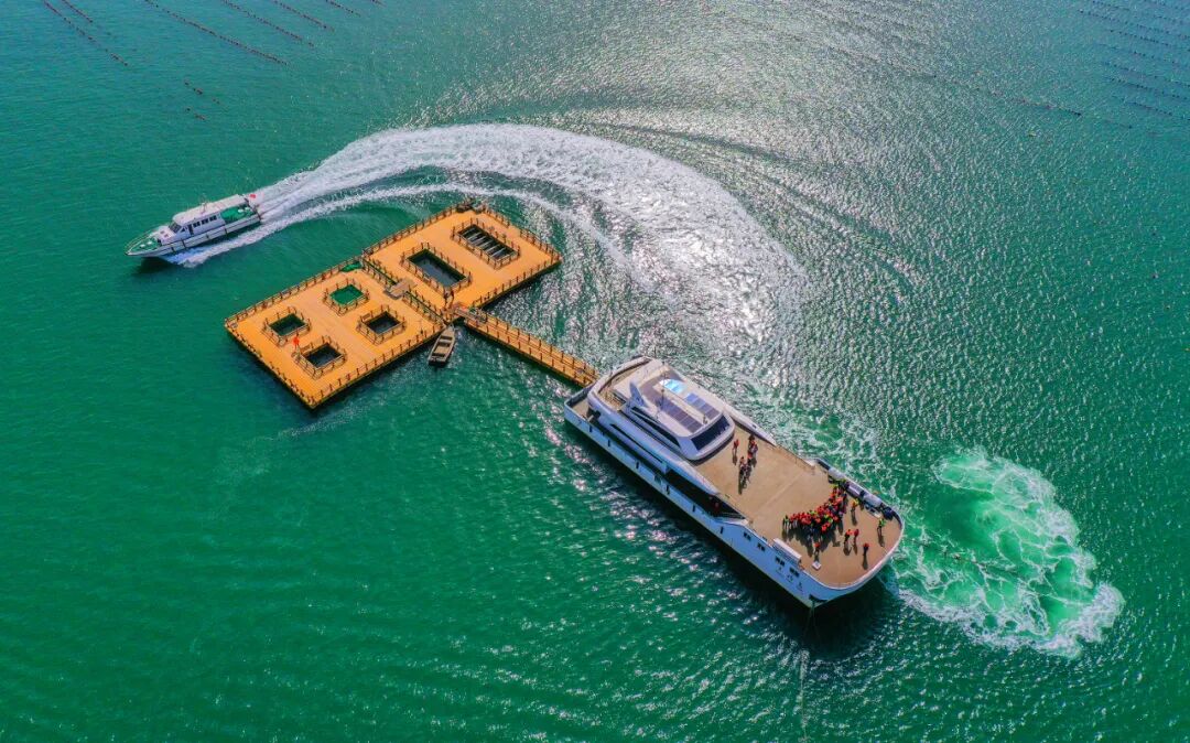 在广阔海域中,还有一个东楮岛海洋牧场。在这儿,你可以亲自上阵,采摘贝类海鲜、海上垂钓,直接品尝原汁原味的海鲜。