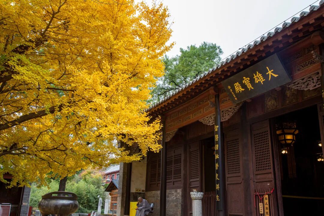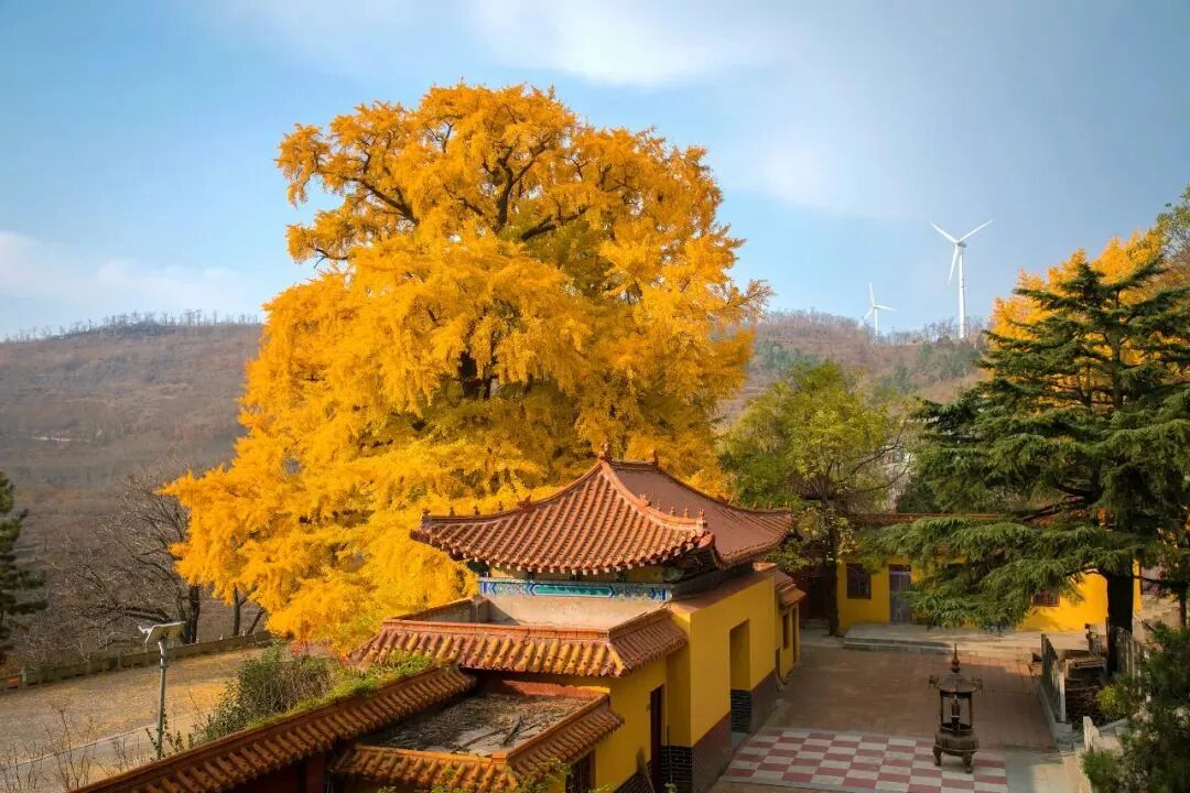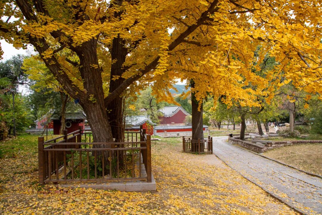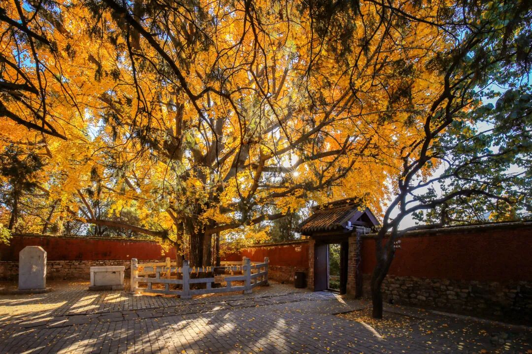 如今这三株银杏已亭亭如盖、古木参天,尤其到了秋天满树金甲的银杏与古色古香的寺庙相映衬,更是美不可言,也正是一年中观赏最好时机。