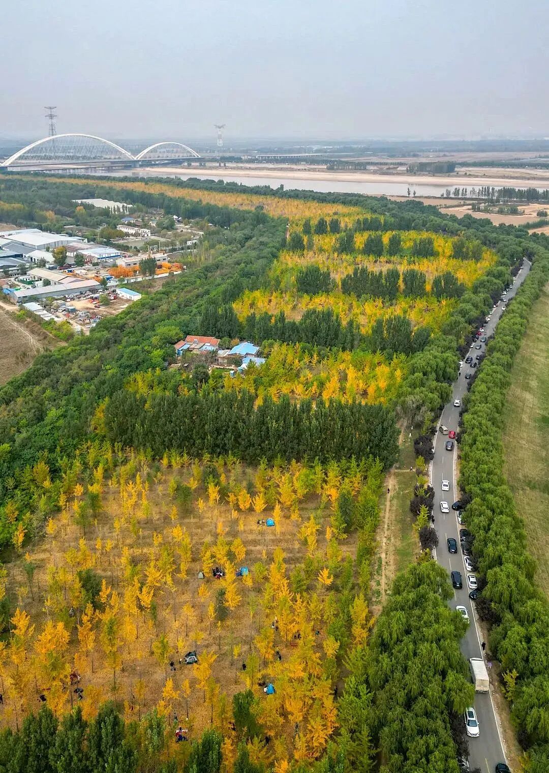 银杏树根系发达,这千亩银杏林不仅能起到防洪固堤、防汛固沙的作用,也为黄河边的秋季增添了一抹“保护色”。
