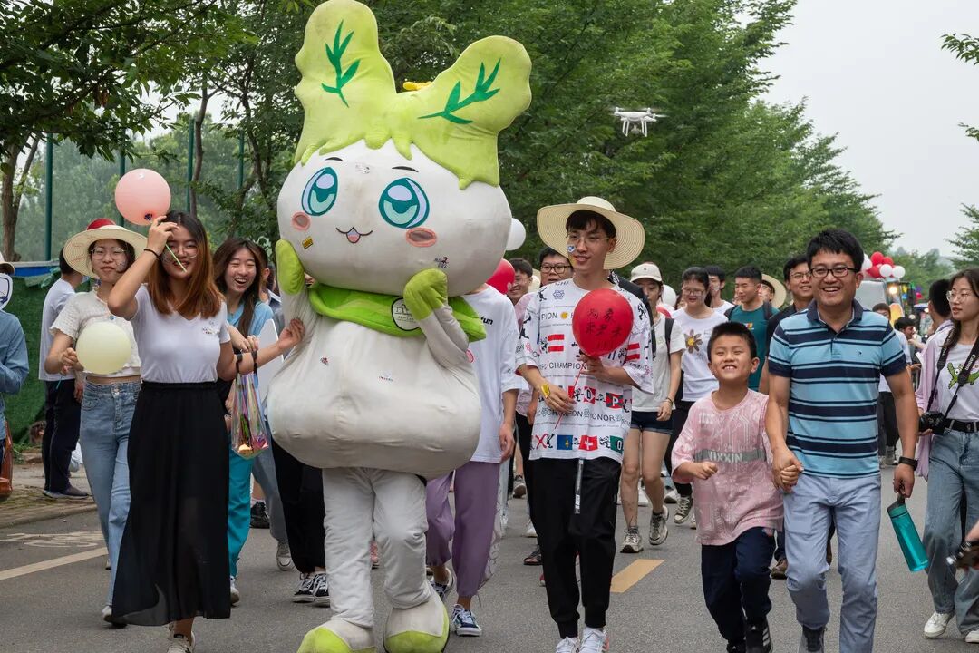 “太壮观,太震撼了!”注视着滚滚向前的“钢铁长龙”,沿路的同学们也纷纷加入欢乐的海洋,融入巡游队伍之中。