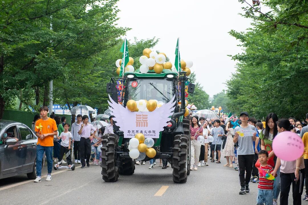 上午9:50,15辆现代农机装备在工科实训基地阵列待发。现场主持人施展介绍了本次活动的整体情况。随着现场师生齐声倒计时“5,4,3,2,1”,毕业巡游在引擎的轰鸣声和师生的欢呼声中拉开序幕。