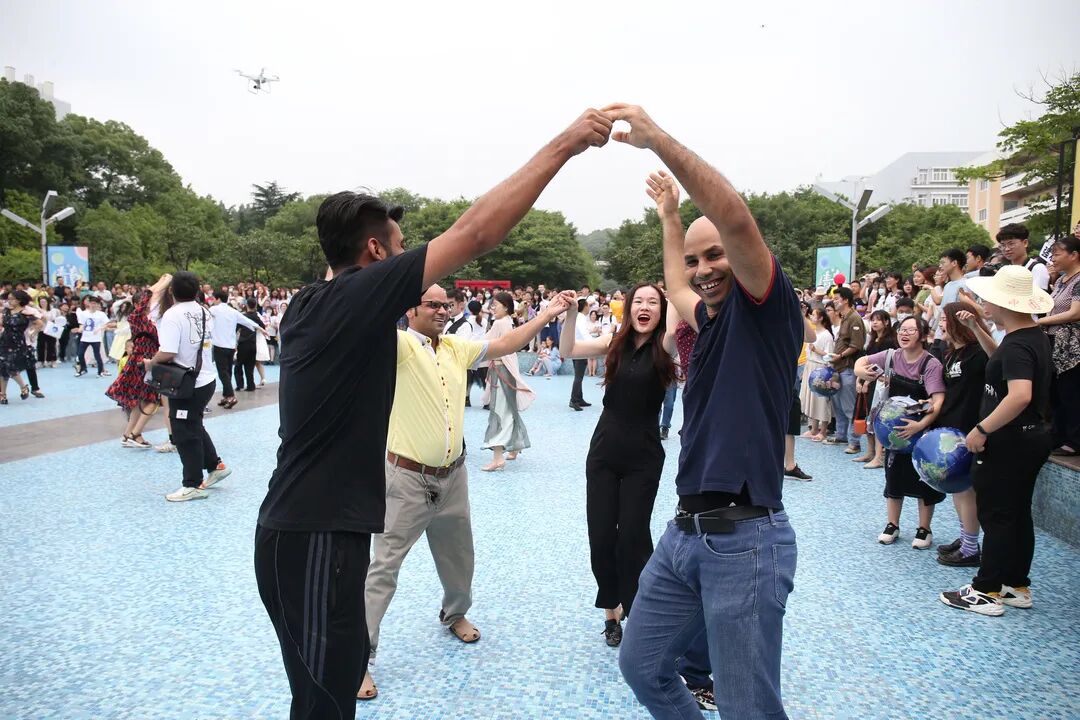 ▲师生们一起在舞池中携手跳起“狮山毕业跳”