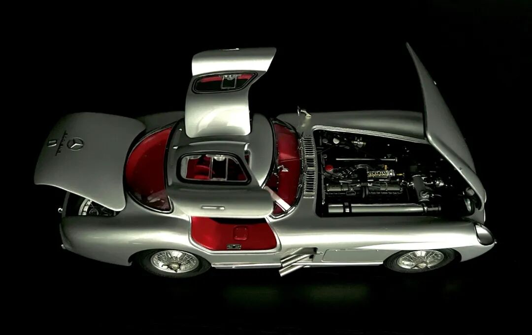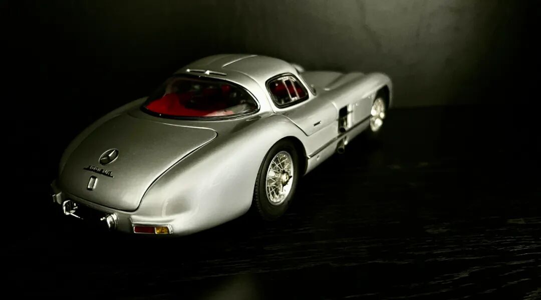 可能收藏汽车模型的读者知道 CMC 这个品牌,以做工精致出名。别看这台 300SLR 是真车 18 比例缩小的,但全车有 1817 个零件,合金全开。