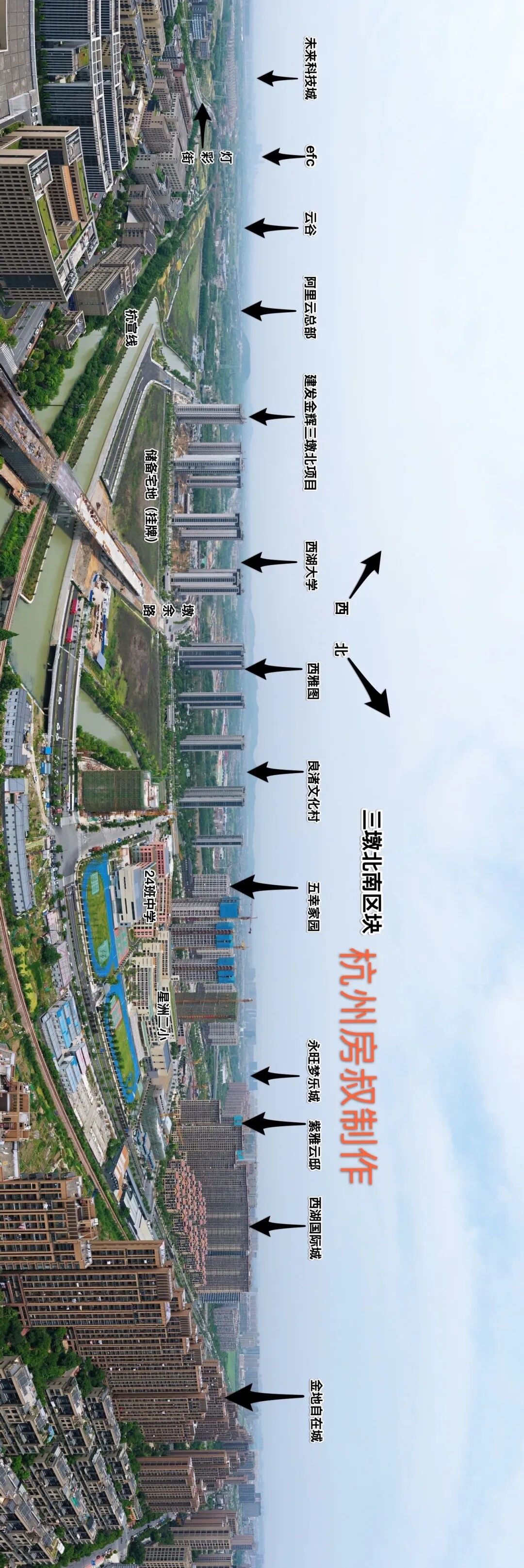 为了全面的阐述三墩北的价值属性,房叔借助航拍给大家立体展现三墩北的板块现状与结构。