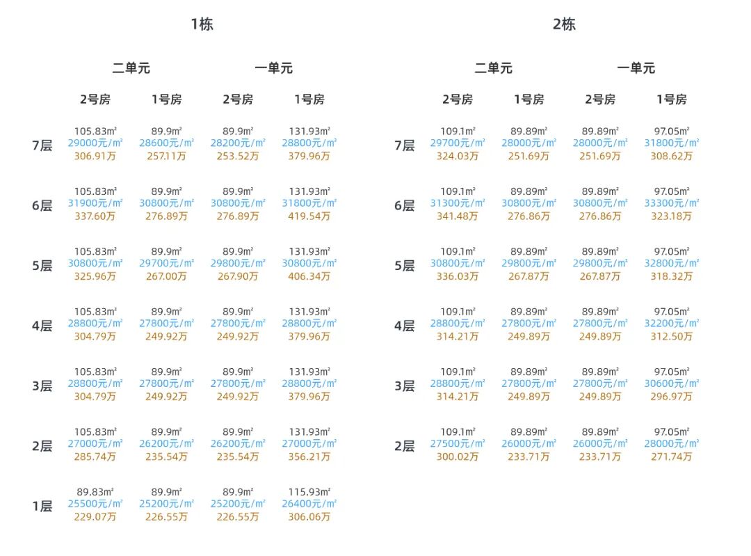 在楼幢选择上,建议优选1号楼,其次选择2号楼;在户型选择上,90㎡功能性相对较好,总价可控,做优选,其中东单元户型布局相对合理,做更优选;