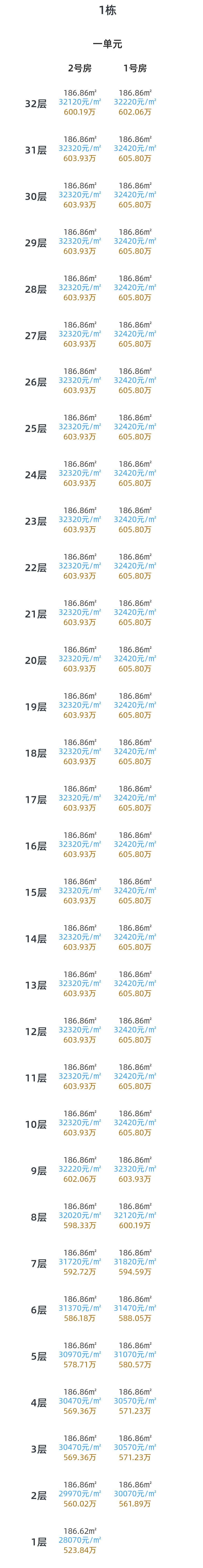 5. 价格因素:总层数为32F,总价最高在10F以上至次顶楼,再往下每层之间价差1-10万元不等。