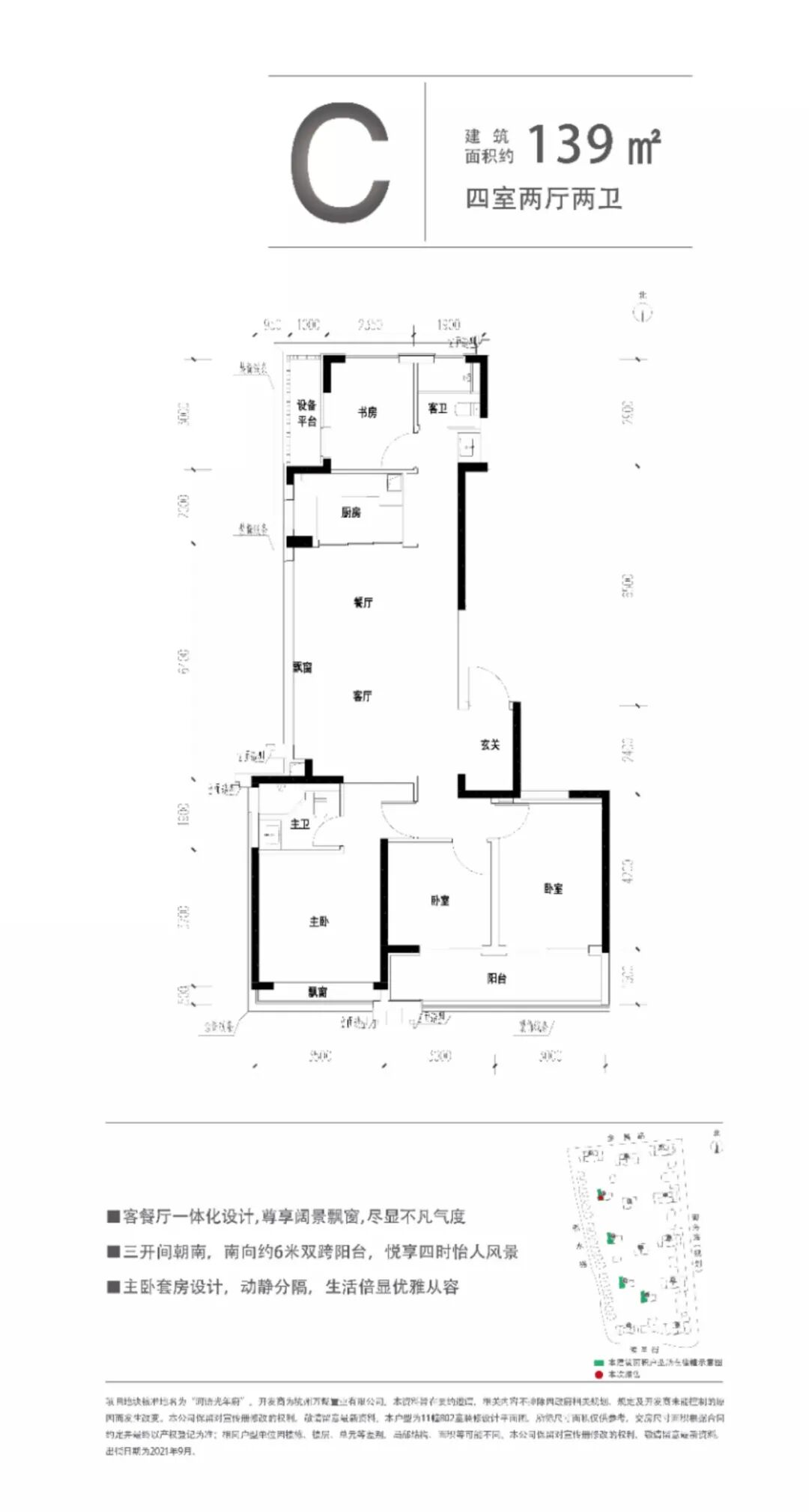 1. 所处位置:约108㎡为1、6号楼中间套,约129㎡为1、6号楼东西边套,约139㎡为8号楼东西边套,约165㎡为7号楼东西边套;
