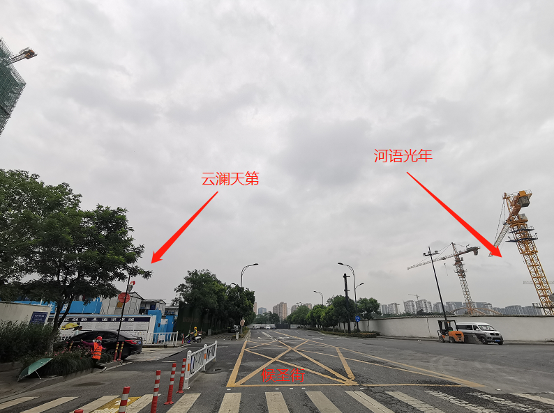 楼盘东侧为在建上河公元及幼儿园、上海世外领办公办小学;南侧为侯圣路,对面为在建云澜天第;西侧为丽水路,对面目前为谢村渣土中转码头;北侧为金昌路及昌运桥引桥。