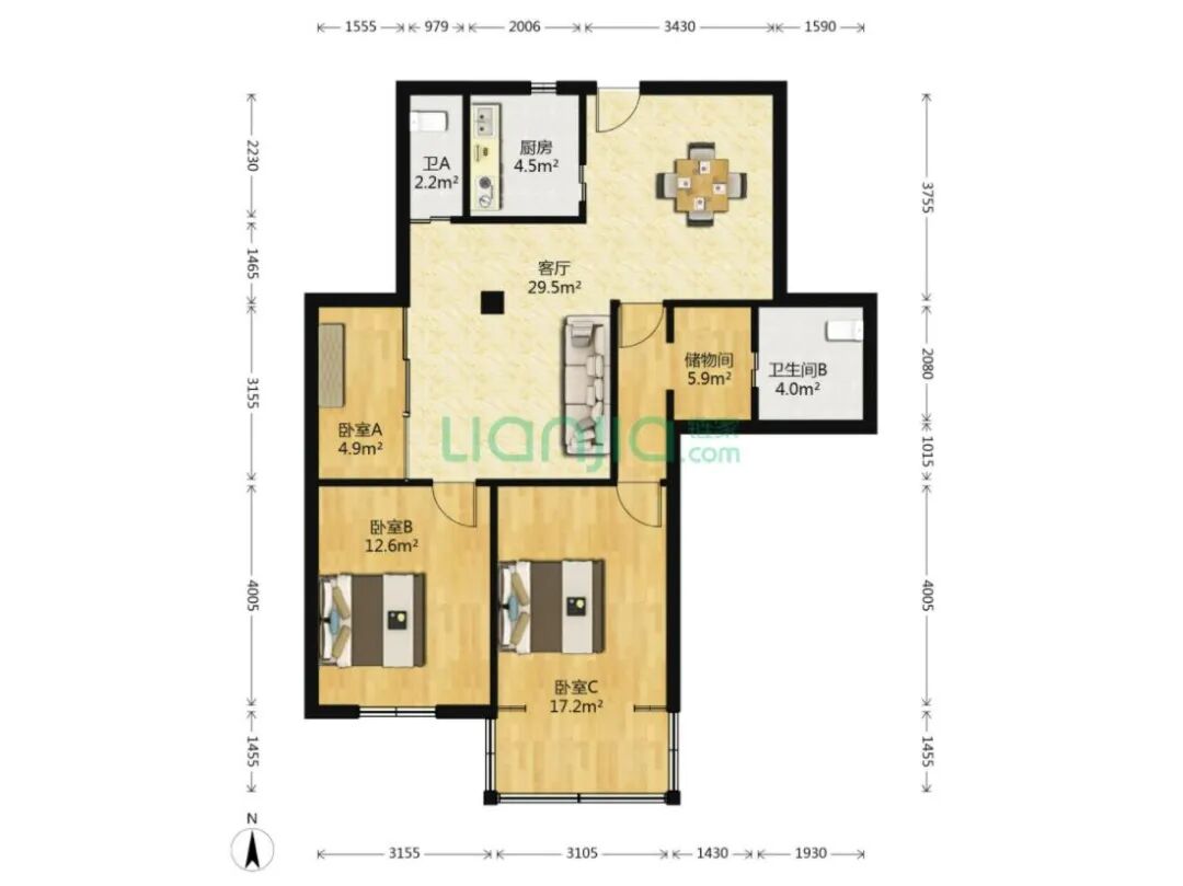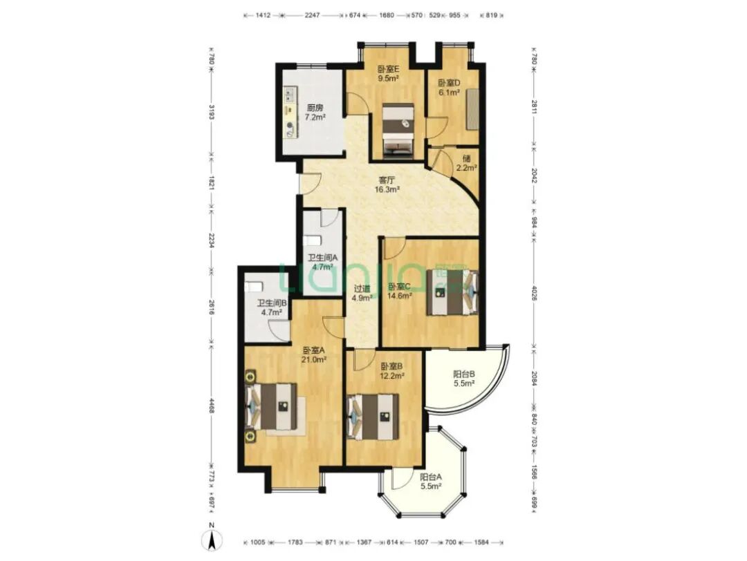 155㎡户型面积有些大,好在均价也低。建议改一卧室为书房,杀到4.5w/㎡都不是不可能,能700w出头在这个地段买到优质学区大四房,不亏。