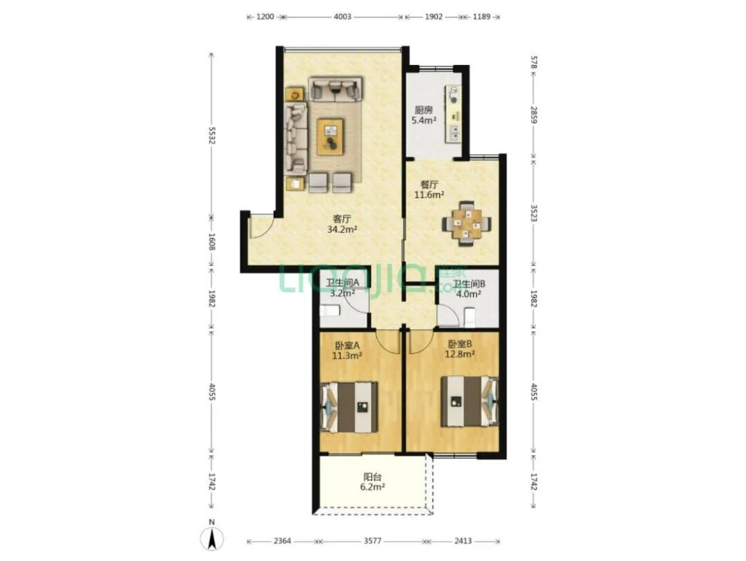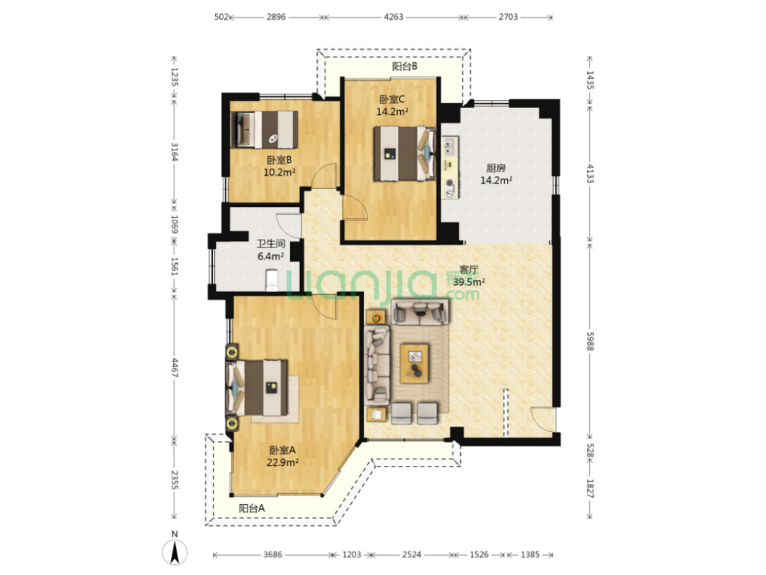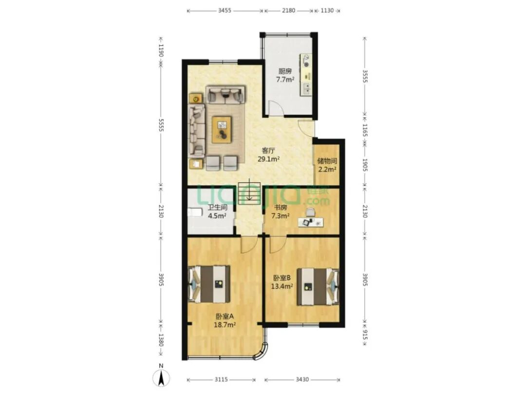 推荐99㎡户型,挂牌7w/㎡,设计的尺度合适但价格虚高,好在楼龄新位置好且安静,6.5w/㎡上下值得考虑。