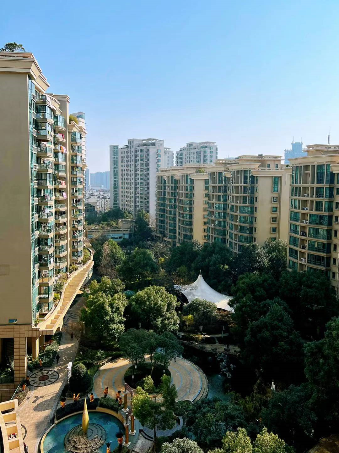 值得表扬的是金都华庭还是杭州最早一批人车分流设计的小区,不但没有车行安全困扰,抹除机动车道后,留白处可以随意设计一体化中心园林,而45%的高绿化率超过现在住宅规划15个百分点,舒适度,无疑不管放在00年代还是现在,都是出类拔萃的。