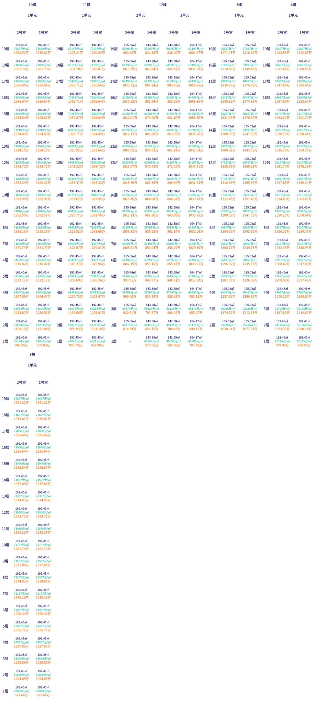 顶楼价格接近于4、5F,从高楼层采光视野角度考虑,优先于4F前做选择。