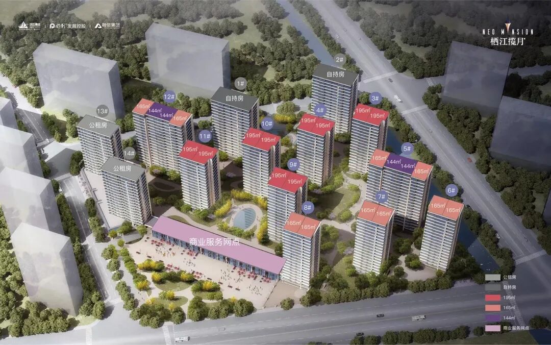 楼盘规划了10幢19F高层住宅,此外还需代建2幢自持楼幢1、2号楼和2幢公租房13、14号楼。