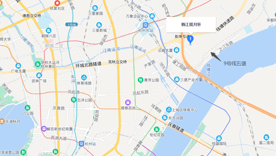楼盘与9号线五堡站之间距离约950m,到钱塘快速路入口距离约400m;周边较近的学校有御道幼儿园、钱江外国语学校、钱江贝赛思实验学校等及新增开办的天长小学观潮校区;
