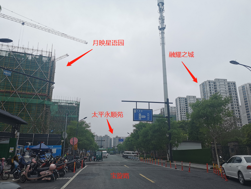 楼盘东南侧为昙花庵路,对面为规划公园用地;东北侧为河道及明月桥路,对面为规划住宅用地;西北侧为钱塘路,对面为规划住宅用地、幼儿园用地;西南侧为渡口路,对面为规划住宅用地。