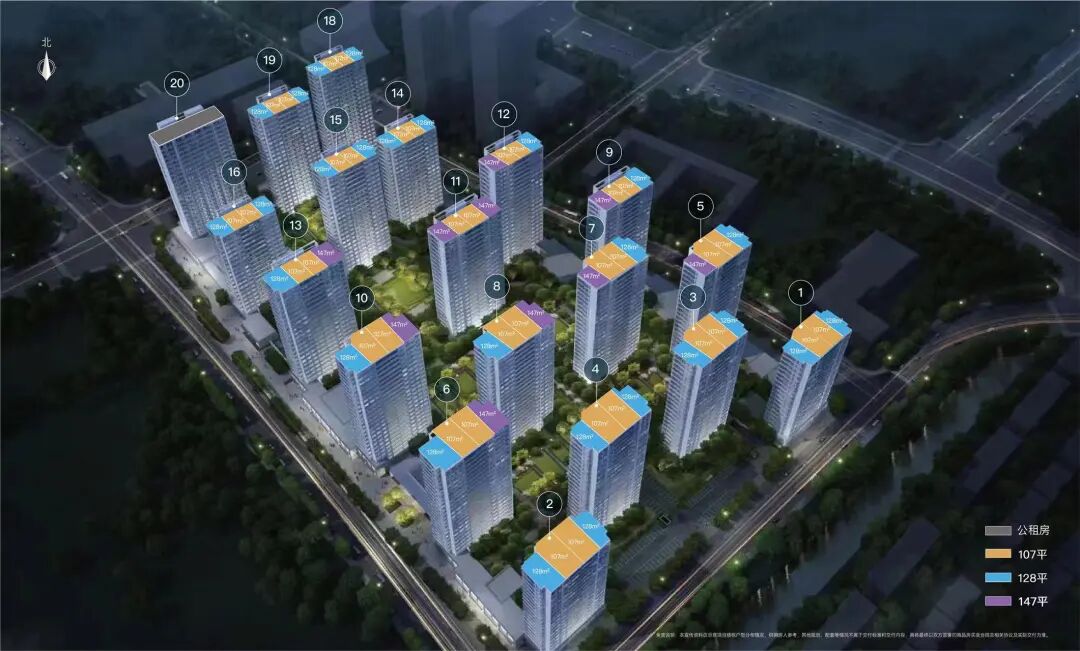 楼盘规划了19幢21-26F高层,其中西北角20号楼为公租房;另外在20号楼南侧规划了邻里中心,售楼部目前设在顺丰创新中心。