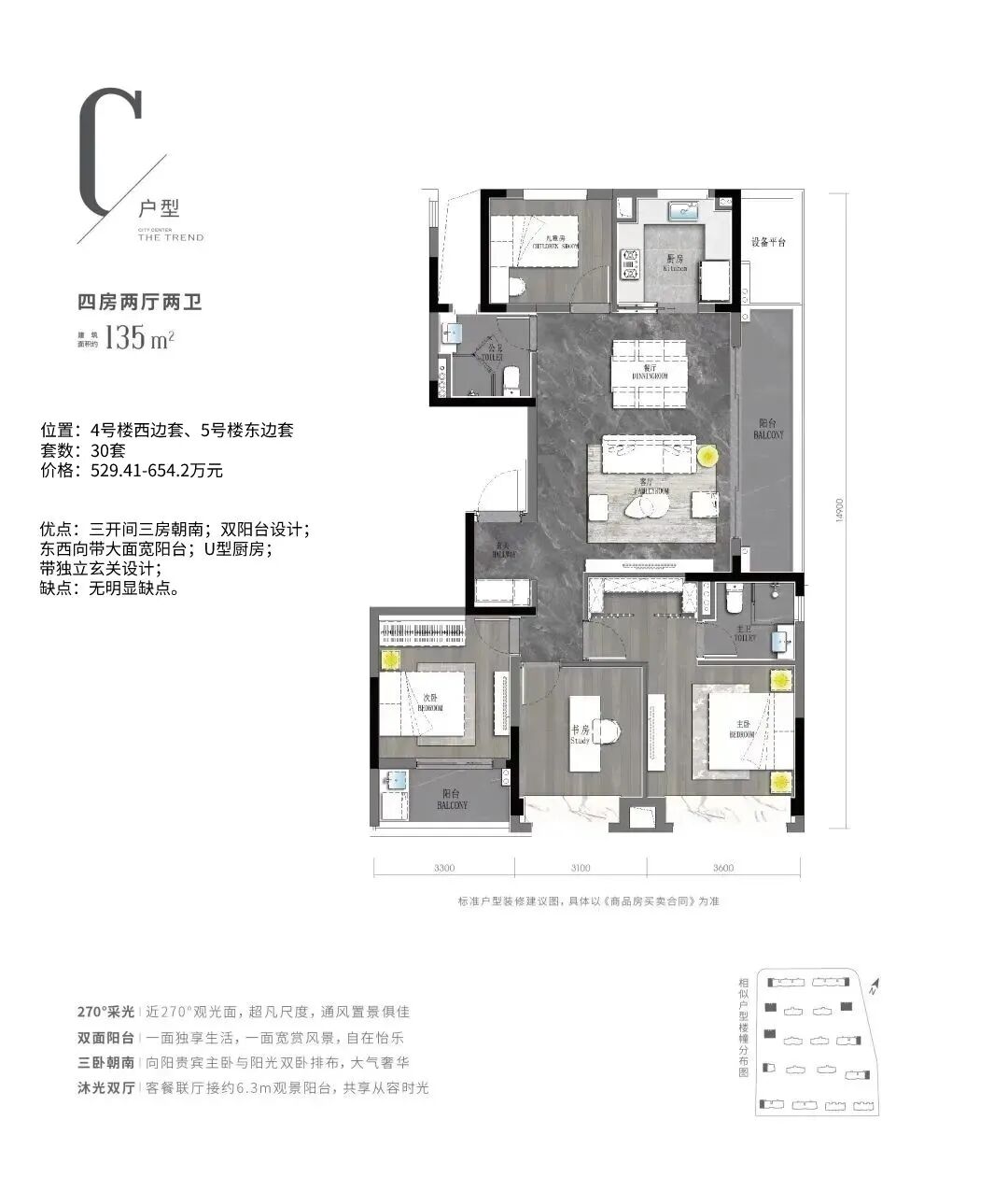 1.所处位置:约135㎡为4、5号楼中间套、东西边套;