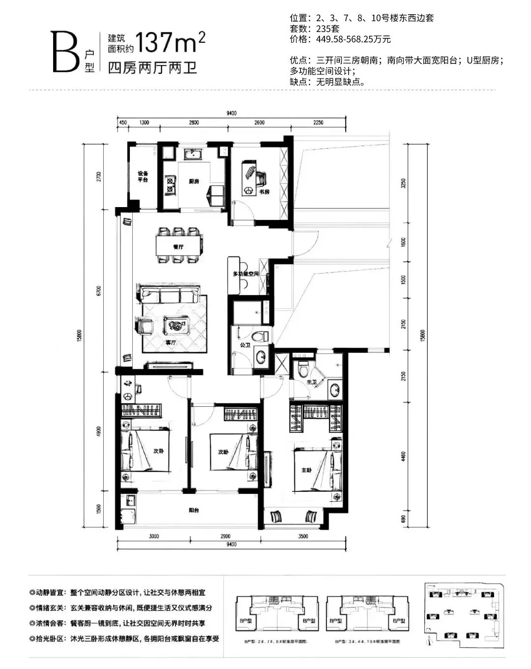 主力户型:高层约104㎡户型235套,137㎡户型235套,164㎡户型152套