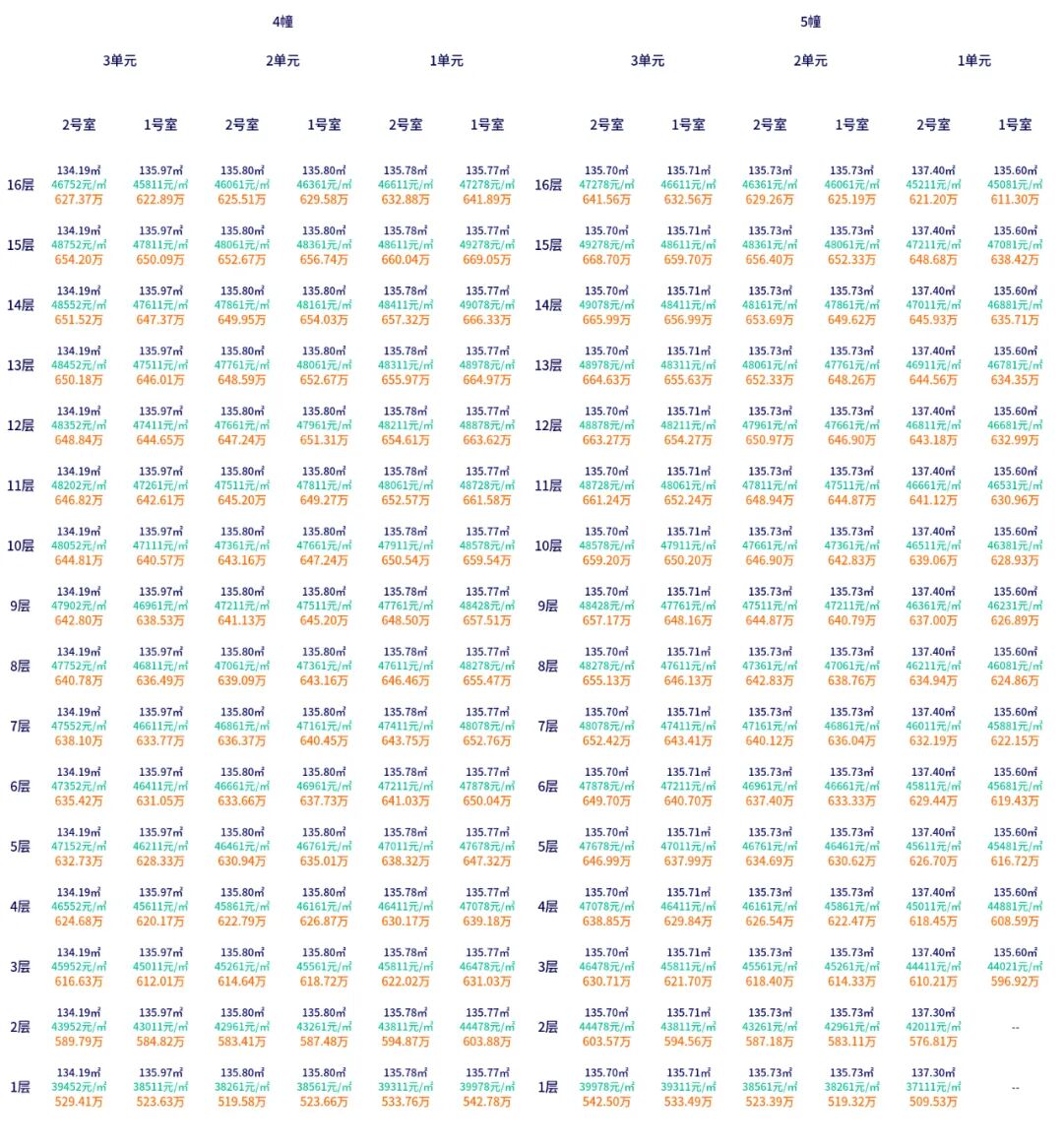 其次选择4号楼西边套、5号楼东边套,兼顾价格和噪声因素可以中间楼层往上选,其中优先5号楼东边套;再次选择4、5号楼中间套,从西往东、高往低选;