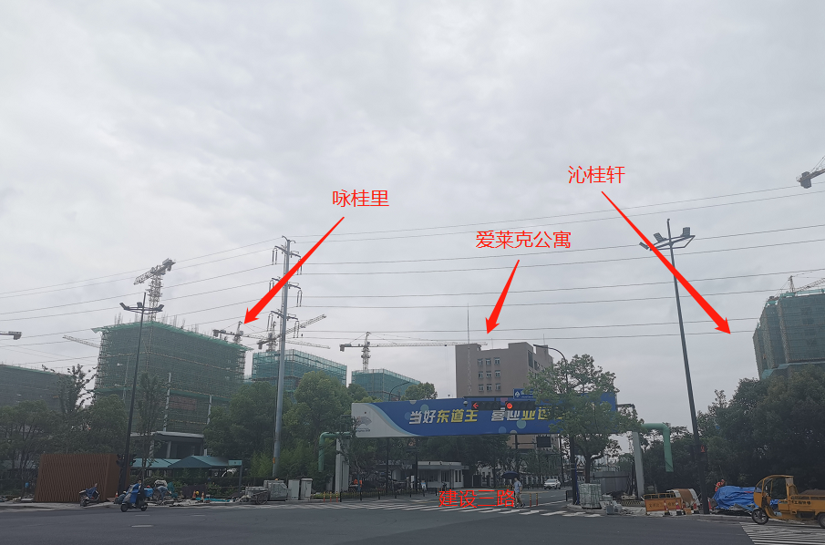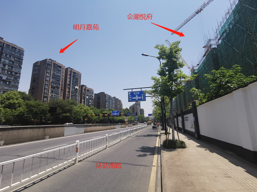 楼盘东侧为环站东路及夏衍二中、邻里中心,南侧靠近艮山西路及钱塘快速路;西侧目前为空地,后期规划商业;北侧为环站南路及夏衍幼儿园、明月嘉苑。