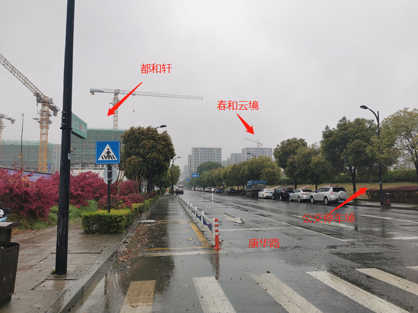 楼盘东侧为康华路,对面为华丰公交停车场;南侧目前为华丰停车场,规划为住宅用地;西侧靠近河道褚家港;北侧为待出让商业地块。
