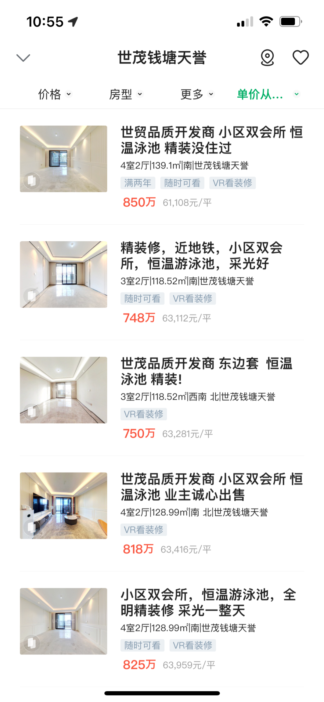 接下来继续看其他板块,我分别选取了滨江区政府、南星桥、以及城东区域的部分热度相对较高的二手楼盘。