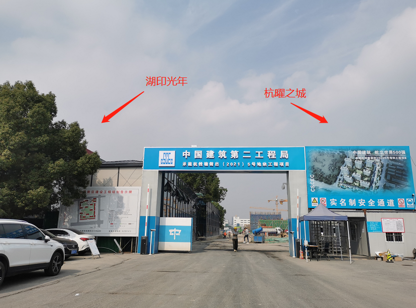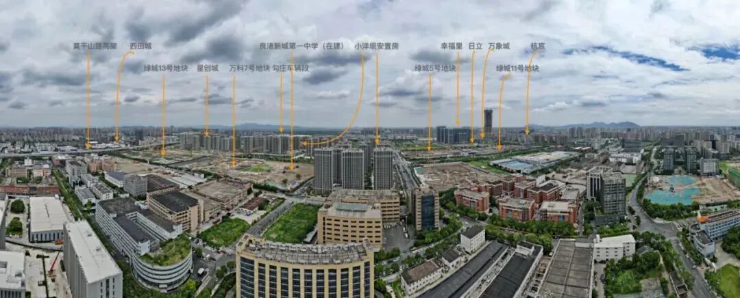 西北侧即为在建星创城,东侧为在建良渚新城一中;北侧为小洋坝家园,西侧为在建月映海棠园。