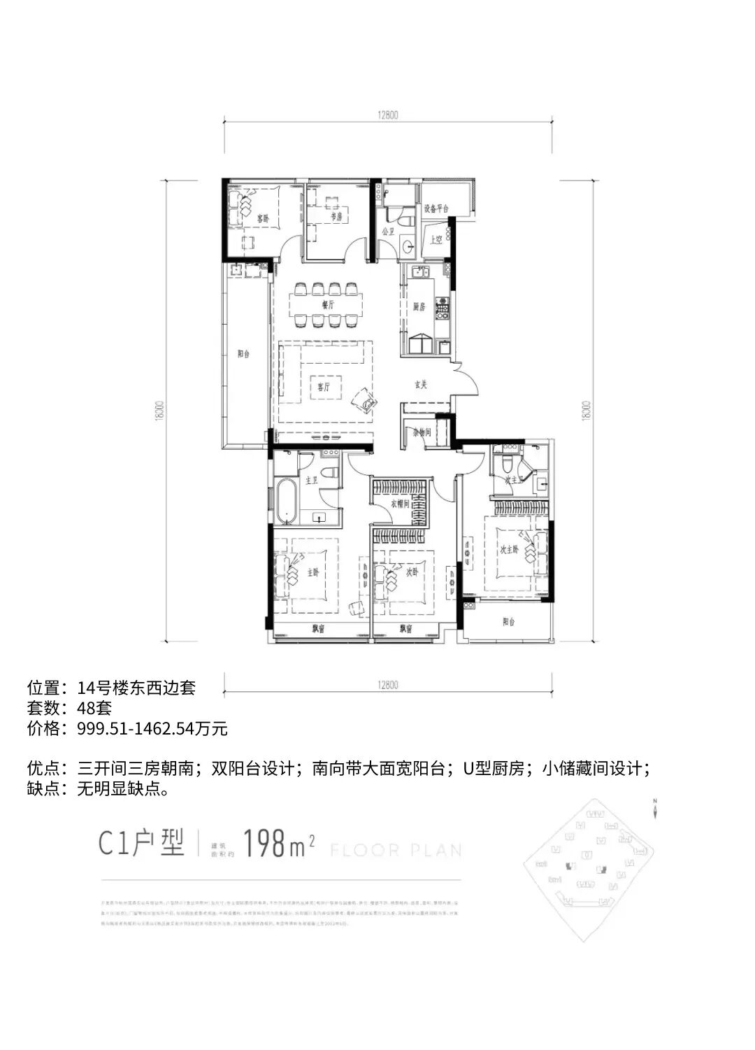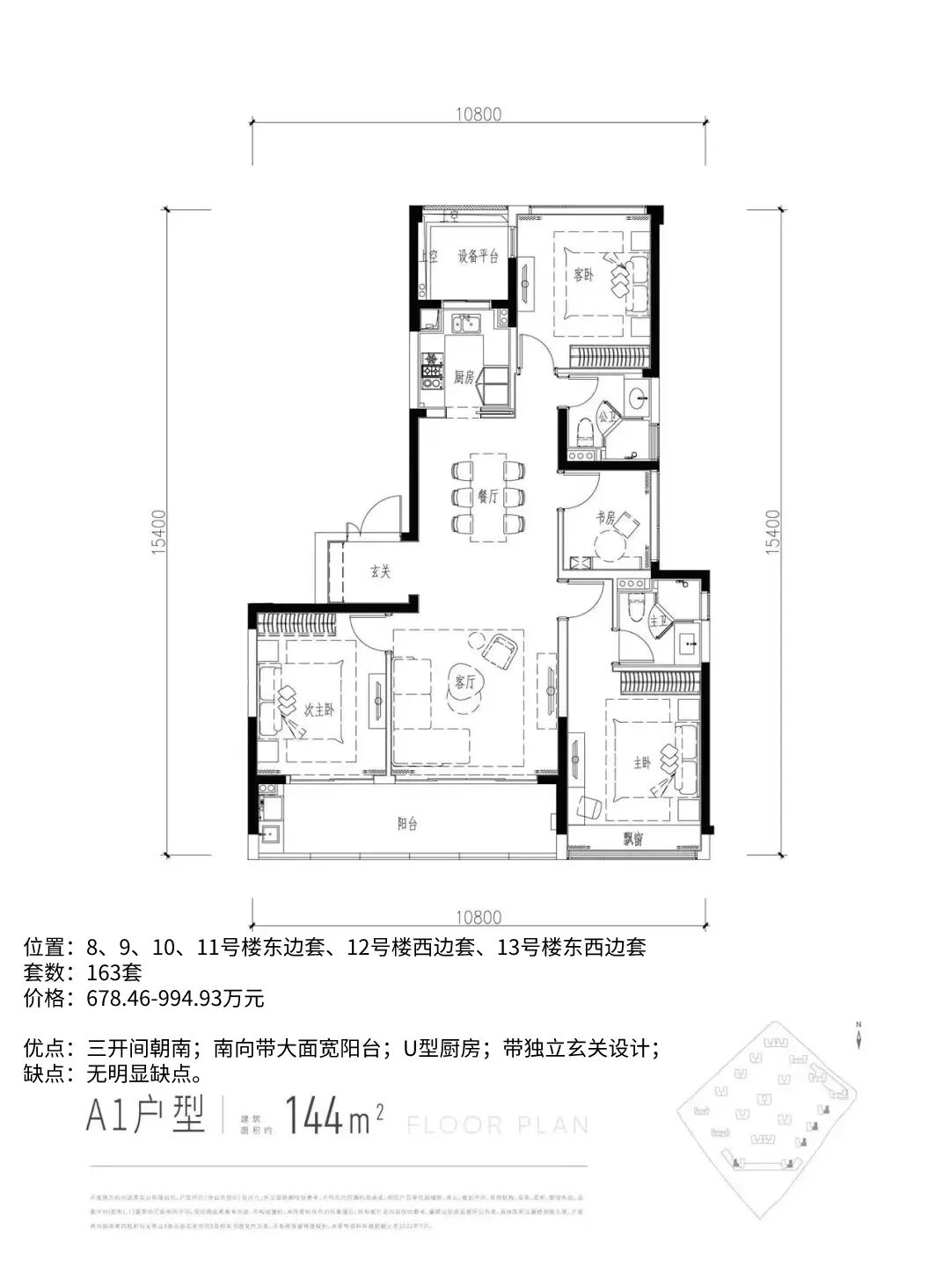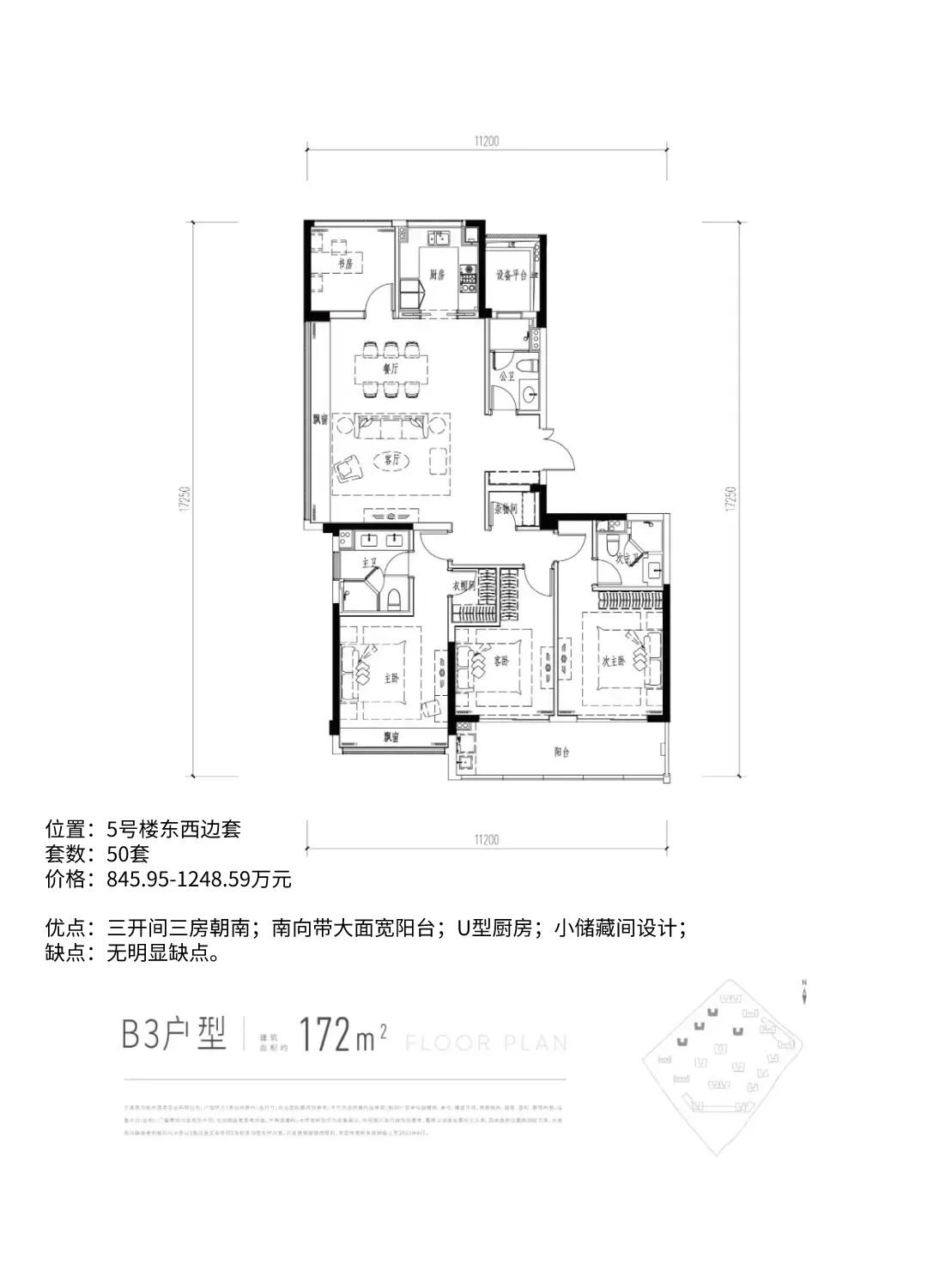 主力户型:144㎡户型163套,172㎡户型213套,198㎡户型48套