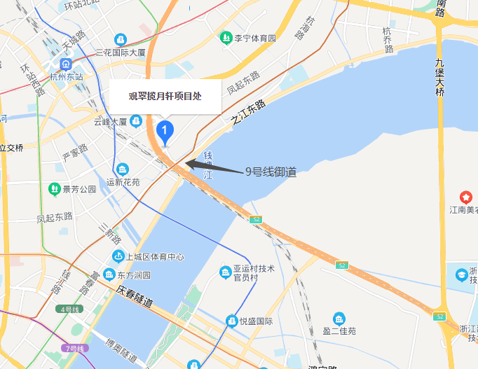 楼盘与9号线御道站之间距离约550m,周边较近的学校有御道幼儿园、钱江外国语学校、钱江贝赛思实验学校等及新增开办的天长小学观潮校区。