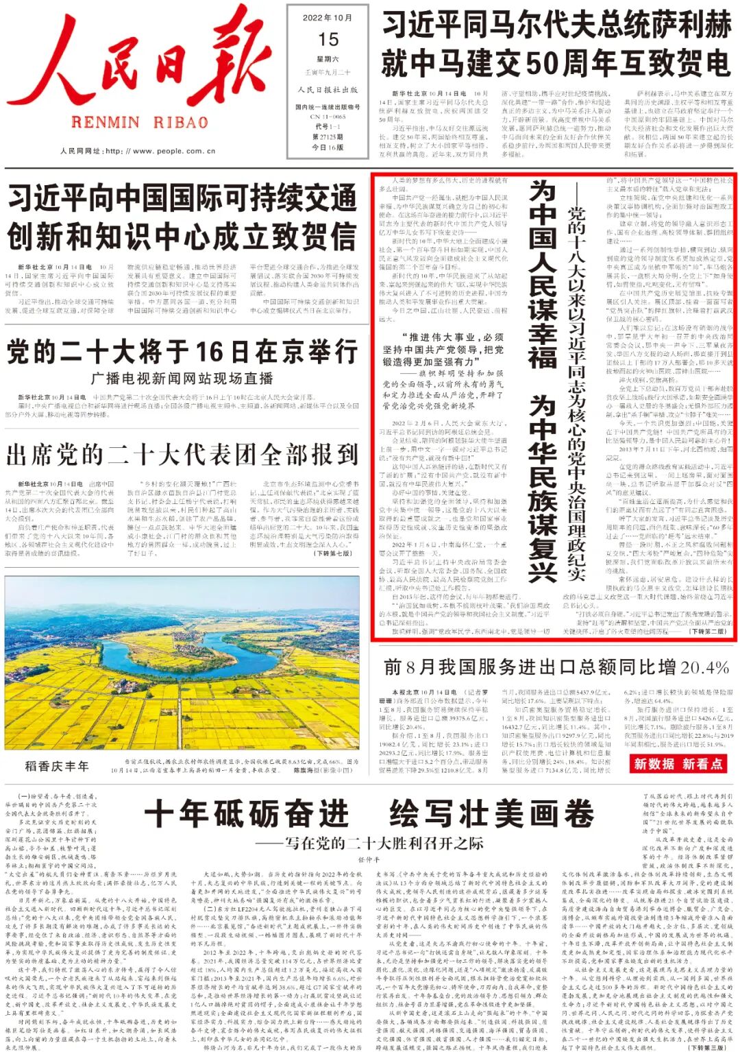 不约而同,出席上合组织撒马尔罕峰会的多国领导人纷纷同习近平谈及“一带一路”合作;不约而同,哈萨克斯坦总统、乌兹别克斯坦总统将本国最高荣誉勋章授予中国最高领导人。9年前,习近平总书记在纳扎尔巴耶夫大学发表演讲,首次提出共建“丝绸之路经济带”倡议。几年间,当连续两届“一带一路”国际合作高峰论坛在华举办、与会各国领导人接踵而至,当亚欧大陆上一个个经贸合作区拔地而起、一列列中欧班列穿梭往来时,国际社会赞叹“一带一路”倡议是“人类历史上最具雄心的经贸一体化计划”。今天,中国与沿线国家货物贸易额累计约12万亿美元,同149个国家、32个国际组织签署了200多份合作文件;今天,因为“一带一路”,哈萨克斯坦的小麦卖到了东南亚,乌兹别克斯坦安格连—帕普铁路隧道建成通车,希腊比雷埃夫斯港重现生机,更多巴基斯坦民众在炎炎夏日吹上了电扇,塞内加尔干旱地区村民喝上了干净的水……从历史深处走来的中国倡议,在中国同世界交融发展中,不断书写构建人类命运共同体的大美诗篇。放眼全球,百年变局叠加世纪疫情,单边主义保护主义甚嚣尘上,冷战思维强权政治阴魂不散,国际和地区形势错综复杂……世界进入新的动荡变革期,人类站在新的十字路口。世界怎么了、我们怎么办?这是习近平总书记一直思考的问题。“人类生活在同一个地球村里,生活在历史和现实交汇的同一个时空里,越来越成为你中有我、我中有你的命运共同体。”2013年3月,党的十八大后习近平总书记首次出访,在莫斯科国际关系学院发表演讲,作出这样的重大论断。10年来,在纽约联合国总部、日内瓦万国宫,习近平总书记系统阐述构建人类命运共同体理念内涵和目标路径,从中国人民和世界人民共同利益出发,高高举起引领时代潮流和人类前进方向的鲜明旗帜。10年来,构建人类命运共同体被写入联合国决议、上合组织成员国元首宣言等一系列国际文件,在中国与世界的紧密互动中凝聚日益广泛的国际共识,汇集起日益强大的全球合力。从北京出发,跨越高山大海,10年间,习近平总书记出访42次,足迹遍及五大洲69个国家;在国内,举办一系列重大主场外交活动,接待100多位来访的外国元首、政府首脑,疫情背景下又通过“云外交”同国际社会密切沟通。推动构建总体稳定、均衡发展的大国关系框架;发展同周边国家睦邻友好关系;深化同发展中国家团结合作……在习近平外交思想指引下,中国特色大国外交全面推进,外交布局不断完善,建交国增至181个,建立伙伴关系的国家和地区组织达110多个,伙伴关系网络覆盖全球。金秋,上海,第五届中国国际进口博览会准备工作如火如荼。这一由习近平总书记亲自谋划的全球首个以进口为主题的国家级展会,被外界誉为中国开放的“金色大门”。过去4年,习近平总书记每年在进博会开幕式上发表主旨演讲,向世界传递出“中国开放的大门只会越开越大”的强烈信号。连年举办进博会、广交会、服贸会、消博会,统筹推进21个自贸试验区建设,高质量高标准建设海南自由贸易港,颁布实施外商投资法,区域全面经济伙伴关系协定生效实施……海纳百川的开阔格局,基于“世界好,中国才能好;中国好,世界才更好”的深刻逻辑;弄潮涛头的勇毅担当源于“以人民之心为心、以天下之利为利”的深厚情怀。2016年9月,杭州西子湖畔,习近平总书记在这里主持二十国集团领导人峰会。首次把发展问题置于全球宏观政策框架的突出位置、首次制定落实联合国2030年可持续发展议程行动计划、首次采取集体行动支持非洲和最不发达国家工业化……一个个“首次”,在全球治理进程中镌刻下鲜明的中国印记。促成国际货币基金组织份额改革落实,发起成立亚投行、新开发银行,设立丝路基金,中国在全球金融体系变革中的作用不断增强;无论是承诺“力争2030年前实现碳达峰、2060年前实现碳中和”,还是开展新中国成立以来最大规模的全球紧急人道主义行动,中国用实际行动展现了大国应有的样子和责任担当。当今世界既不太平也不安宁。在变乱交织的国际环境中,中国以稳固、坚实、可预期的姿态,为世界带来信心和力量。旗帜鲜明推动建设开放型世界经济,成为“世界上推动贸易和投资自由化便利化的最大旗手”;提出全球发展倡议、全球安全倡议,受到国际社会广泛欢迎;倡导平等、互鉴、对话、包容的文明观,弘扬全人类共同价值,推动不同文明交流对话、和谐共生……今天,习近平总书记提出的中国理念、中国方案正不断转化为全球公共产品。外媒评价,中国提出的将本国利益与地区和全球利益相对接的理念在全球范围内得到广泛响应,这样的理念付诸行动,人类就向前迈出一大步。
