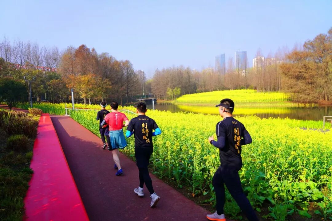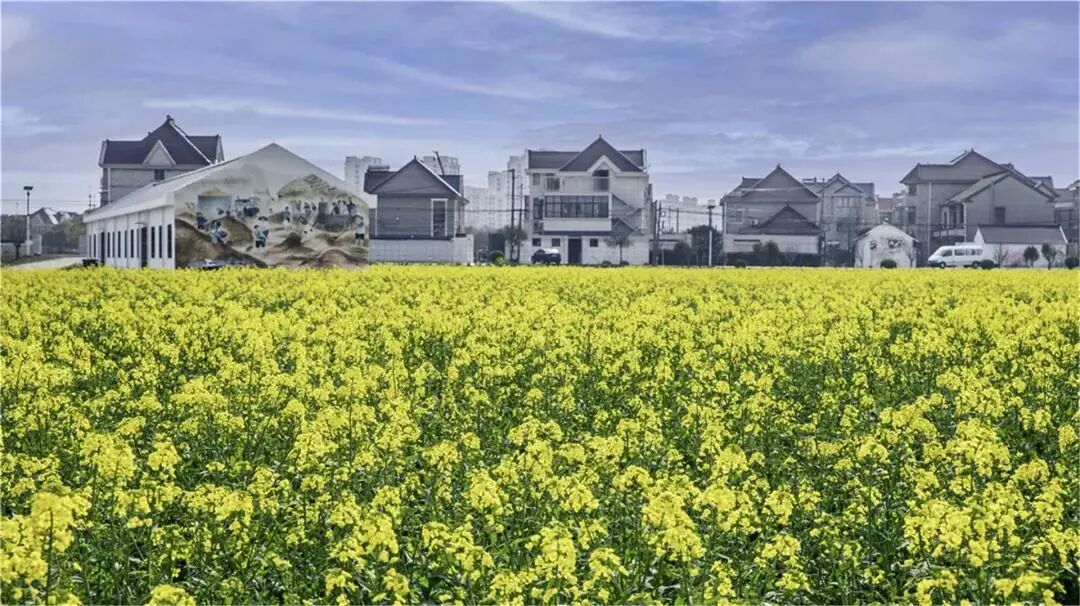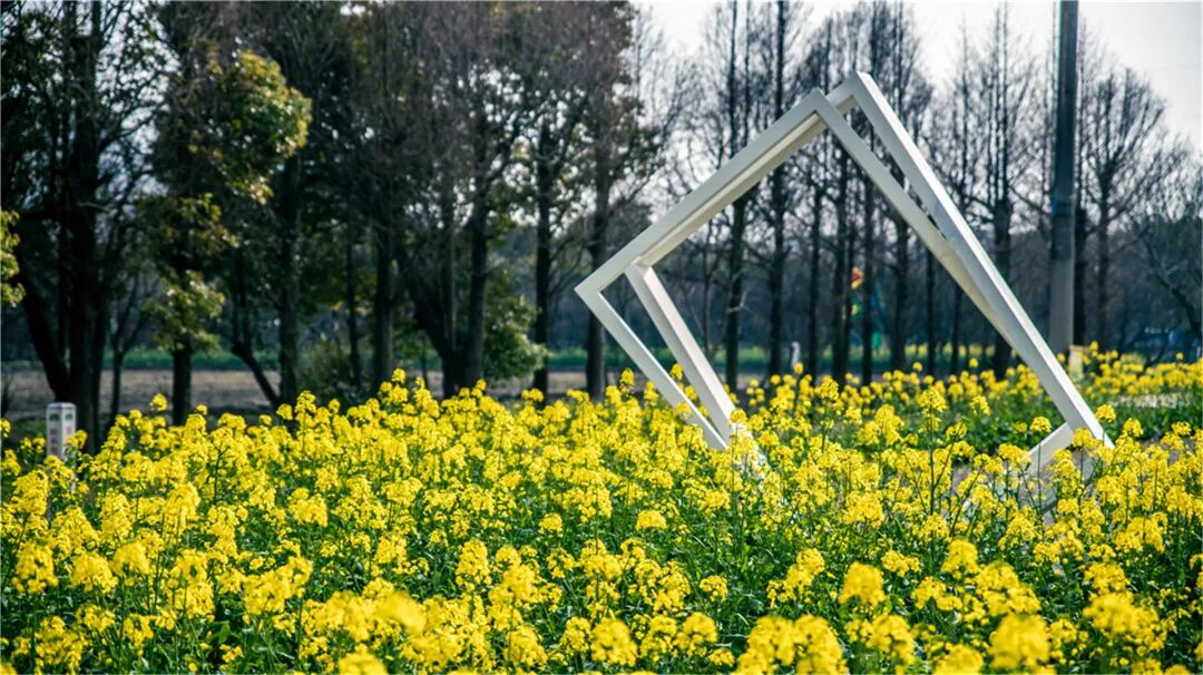 漫步青西郊野公园内的莲湖村,油菜花迎春盛开,犹如一片金黄色的海洋。