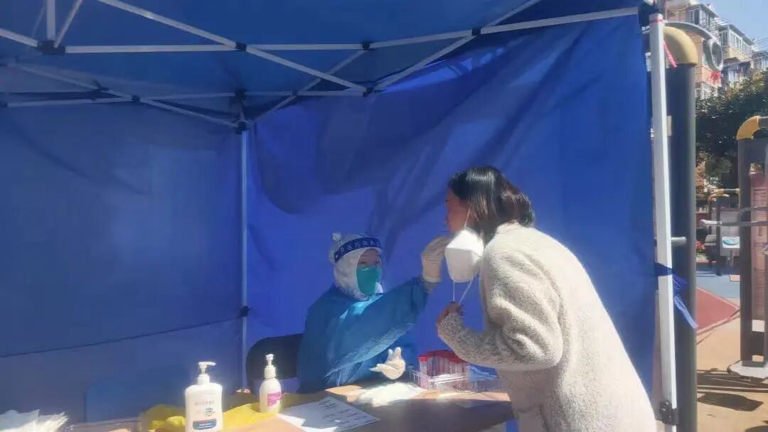 孙嘉尉是利群医院医务科的副科长,这一次疫情期间哪里任务危急,他就站在了哪里。“疫情刚开始时,我作为医院疫情防控先锋队的副队长,主要负责带着采样队伍前往楼宇、社区、街镇做核酸筛查。”孙嘉尉介绍说,随着区域核酸筛查任务的加重,一天只睡1、2个小时成为了常态。他打趣说:“正好减肥了,等蒋丽娜再看见我,一定觉得我更帅了。”