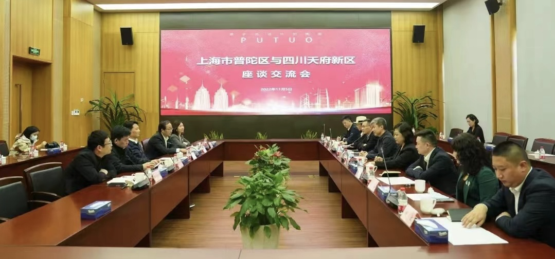 姜冬冬对四川天府新区代表团一行的到来表示热烈欢迎,并重点介绍了普陀区的区位优势、产业特色,以及在大上海保卫战中的经验做法等。姜冬冬表示,当前,普陀区正在深入学习贯彻党的二十大精神和习近平总书记考察上海重要讲话精神,围绕“十全十学十大行动”,将贯彻落实市、区党代会精神紧密结合起来,着力提高经济发展质量、人民生活品质、城区治理效能和党的建设水平。他强调,上海和成都共处长江经济带,普陀区和天府新区长期以来有着良好合作基础,在谋求高质量发展和人民城市建设上既有共通处,也有互补性。希望双方进一步发挥各自优势,聚焦经济社会等各方面各领域展开多维度深入合作,携手加快构建新发展格局、合力推动高质量发展。