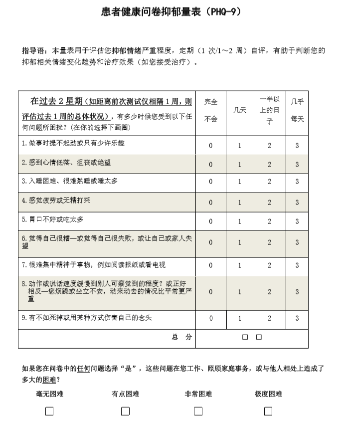 第一步:一份抑郁情绪自查表