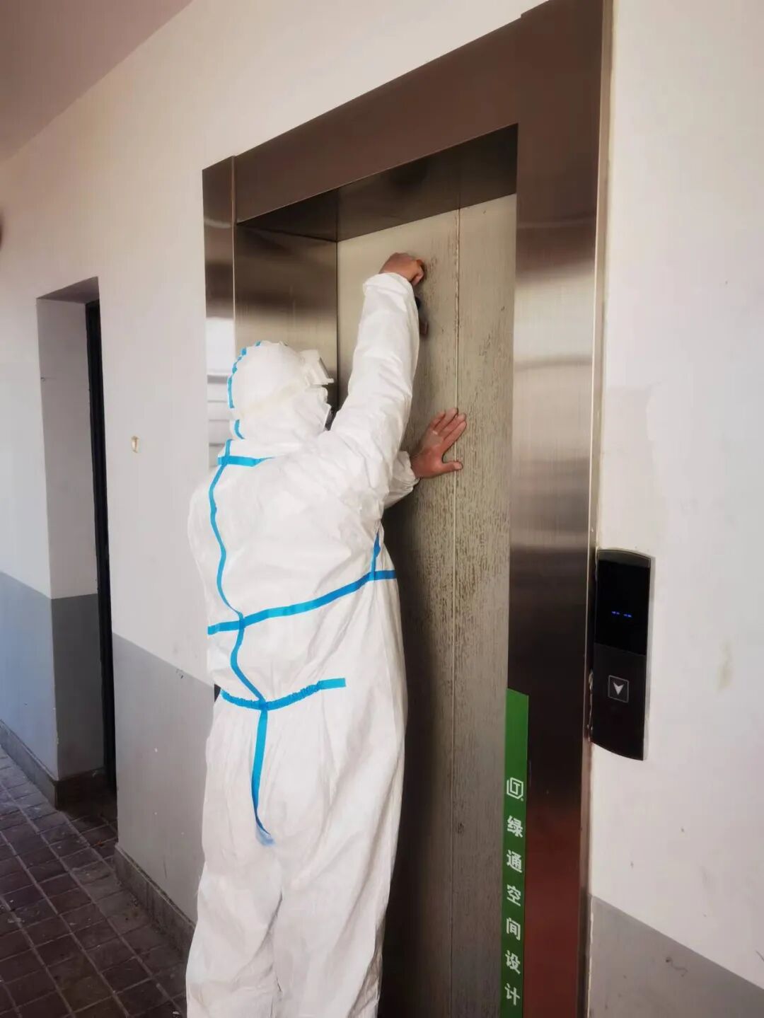为了保障封控期间日常维保的200多台电梯的运行安全,他一直随身带着几十斤重的工具包,24小时连轴转,从电梯顶部机房到底坑,从电梯内部到外观,逐一认真检查。由于工作期间需要一直穿着防护服,一部电梯检验下来,浑身上下都已湿透了。