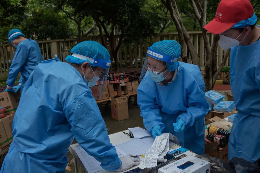 采购清单汇总好提交给超市方面后,由超市备货,在志愿者的协助下一箱箱物资配送至小区,仅是大米就有160袋。物资运回后,社区工作者、志愿者接力出动逐户分装发放,每一份商品都有清晰的购买凭据。车队中午出发,社区工作者、志愿者直到深夜一、两点才结束忙碌,而生活物资则已发放到了包括封控楼居民在内的每一户居民手里。