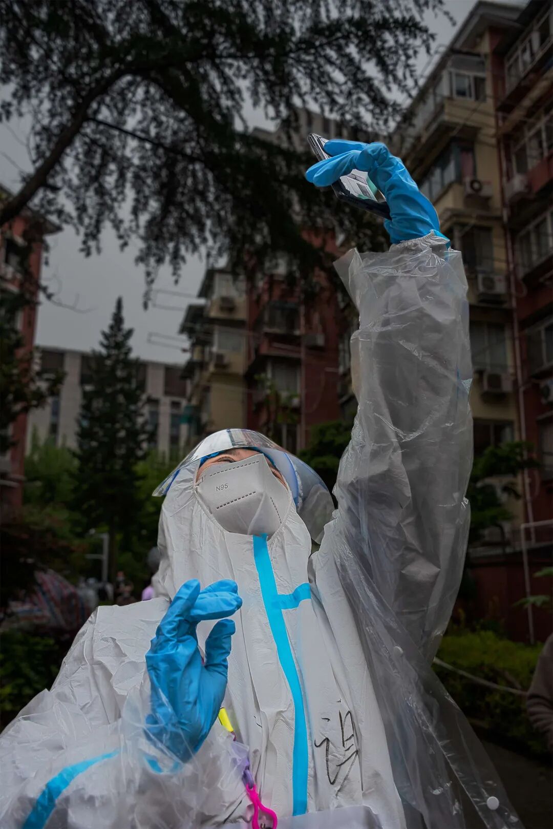 “每当有场景感动了我,我就会记录下来。”家住曹杨新村街道花溪园居民区兰花园小区的居民蒋福明是一位退休医生,也是一位摄影爱好者。疫情防控期间,她主动加入志愿者的行列,端起相机不停奔走,为小区记录了大量抗疫影像,“一方面希望大家能够更理解一线工作者的工作,另一方面因为一线工作者付出了很多,作为居民也希望能够做点什么,为他们留下一个纪念。”两个多月以来,她用镜头记录了居委会工作人员、普通居民、小区志愿者以及外地援护的医务工作者,也记录下了艰辛但充满温暖的抗疫之路。