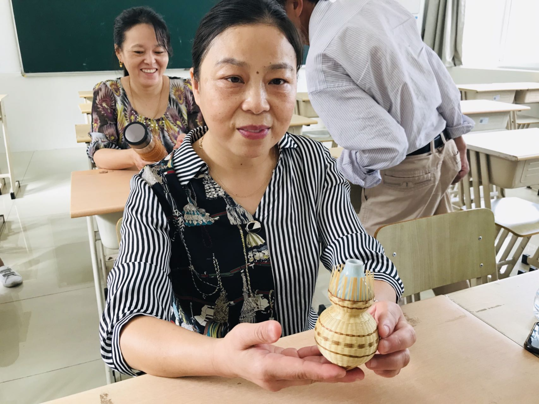 截至8月,项目累计已开课9960课时,香囊、杯垫这些小件已经难不倒学员们。为了达到精准帮扶的最终目的,项目以市场热销品为导向提供课程,以看得见的经济收入来鼓舞学员增强信心。数月培训后,学员们已经能独立完成简单的竹编制品了。每一堂课上,老师都耐心教导,手把手将技艺传授给学员,还鼓励学员们互相帮助,互相切磋,共同探讨编织技艺。同时,老师也传授竹编文化的历史,教学相长,传承非遗经典的同时,也可以帮助学员放宽心境,起到一定心理疗愈的作用。