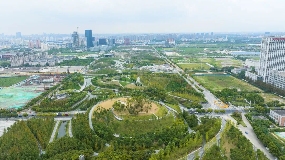 整个案例中,桃浦中央绿地的规划建设是重要内容。作为建成后中心城区最大的中央公园,绿地在区域生态修复、基础设施完善、绿色城区示范达标等方面都扮演了重要角色。目前,北三块生态景观区已全面建成并开放,桃林、溪水、小山构成一副开放式“山水画卷”;南二块休闲活动区计划2022年底对外试开放。