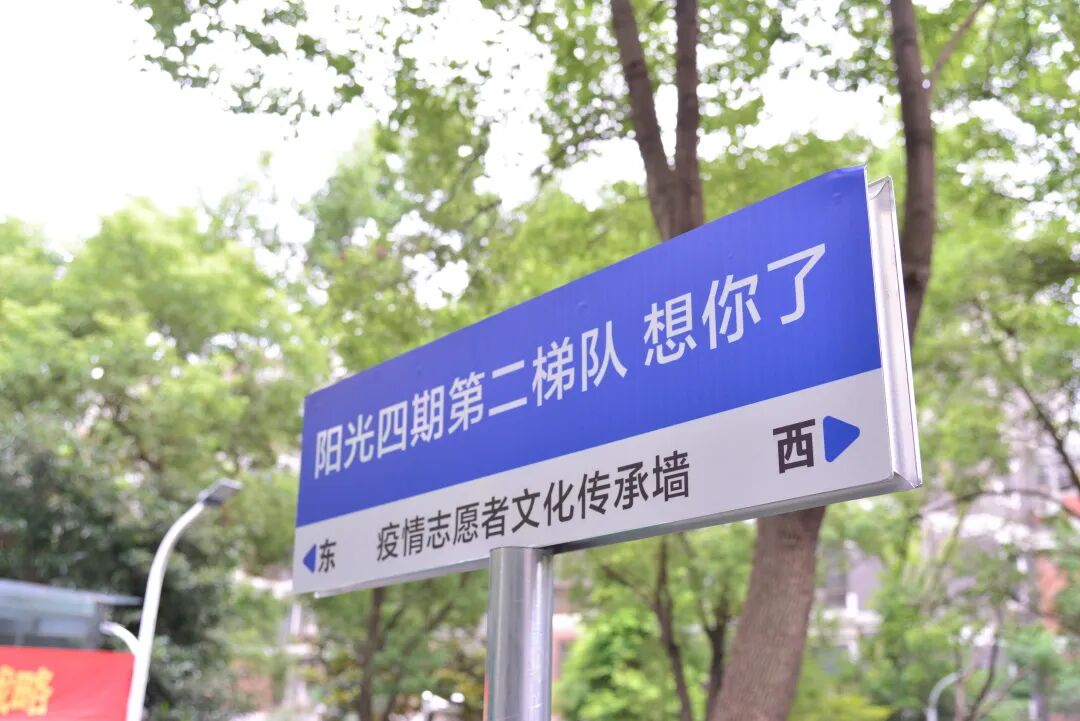 沿着居民区主干道向前,路边的绿化带里立着一面路标,上面写着“阳光四期第二梯队想你了”,顺着路标继续往前,则是于近期打造完成的“疫情志愿者文化传承墙”。阳光四委党总支书记张杰表示,“这是一件非常有意义的事情,我们用这些照片和文字打造了这面‘文化传承墙’,留下‘第二梯队’的故事,提升了队伍的号召力和影响力。”