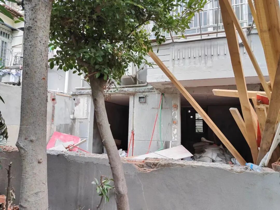 进入施工现场后,综合行政执法队看到两个朝南的房间通往天井的墙壁均被砸开、拆除,同时两个房间隔墙上的一扇门也向南移动了位置,墙壁与门的变动均涉嫌破坏房屋的承重结构。
