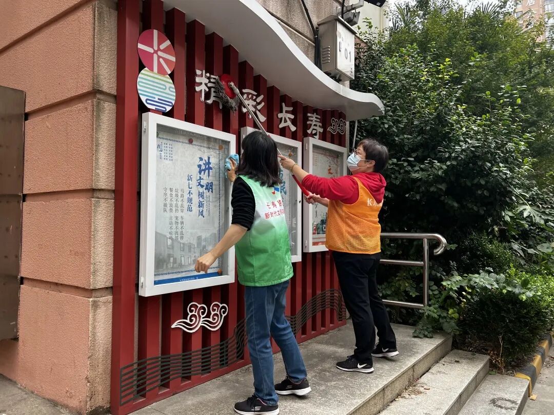 各居民区、物业和志愿者对小区楼道堆物、黑广告、卫生死角、僵尸车等问题开展进一步整治,及时处置解决动态问题,改善社区环境。