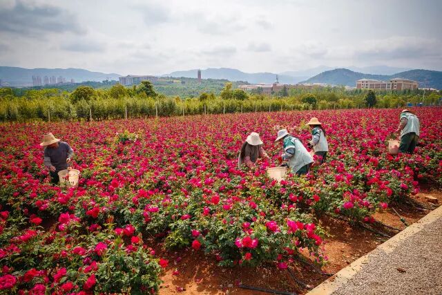 玫瑰盛开时,后勤人员会将它们采摘下来